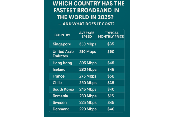 In 2025 the conversation about “fastest broadband” is less about a single headline-grabbing nation and more about two related questions: which countries deliver the highest average real-world fixed broadband download speeds to residents, and how much consumers pay for that performance. Based on multiple independent speed indexes compiled through 2025, Singapore holds the lead for the fastest average fixed (home) broadband speeds in the world, with other high-performing places including the United Arab Emirates (UAE), Hong Kong, Iceland and France closely following. Below I explain what drives these results, give the approximate average speeds you’ll see in 2025, and summarize typical consumer prices so you can compare value — not just raw speed.